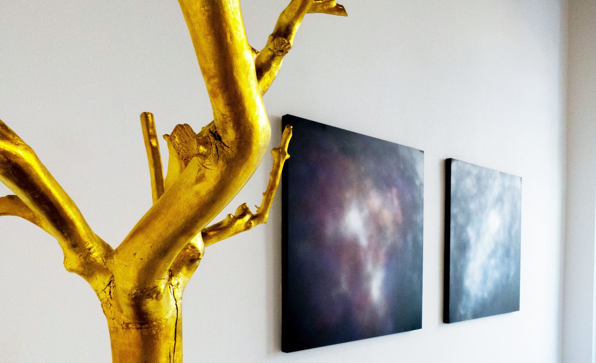 Le opere non fanno parte di uno studio di lunga data sul soggetto. Sono un bagliore istantaneo che illumina un concetto reso forma d’arte dalla preziosità dell’oro e dalla separazione dei due elementi.
