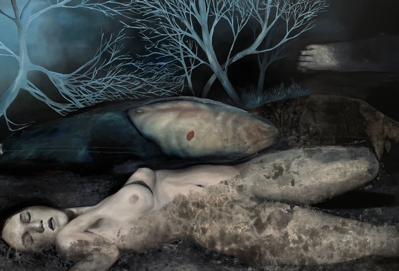 La pittura di Chiara Calore sviluppa i suoi soggetti un una dimensione onirica.